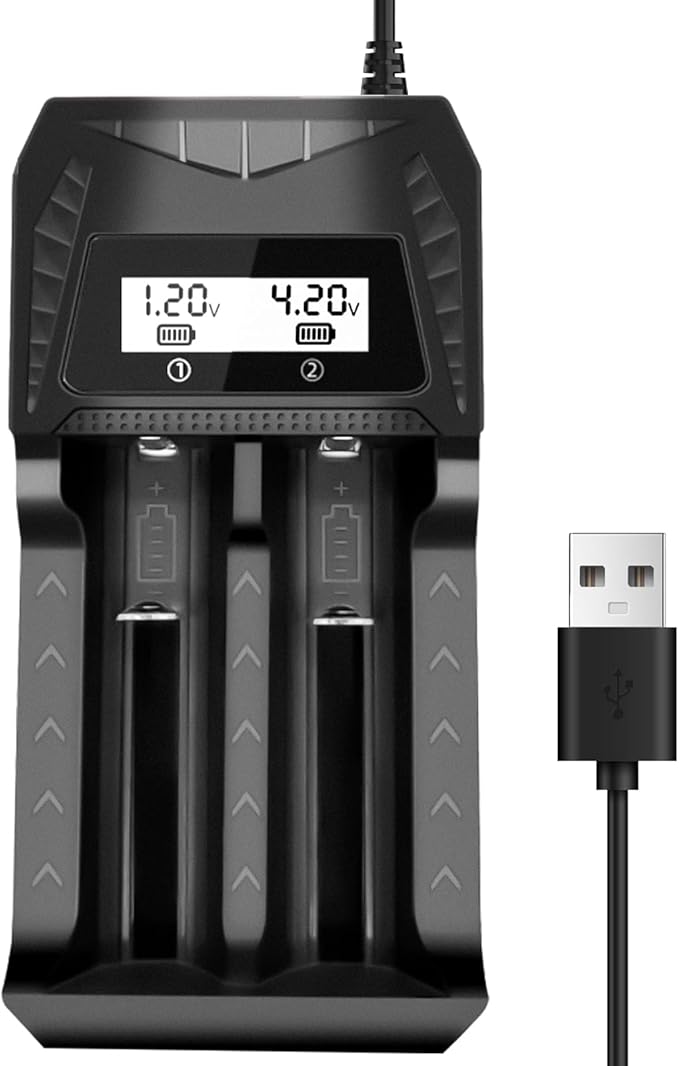 - ✅【Multifunktions-LCD-Anzeige】Dieses Ladegerät für 18650er- und AAA/AA-Akkus verfügt über ein intelligentes LCD-Display mit einer entsprechenden Anzeige für jeden Ladeschacht, die d…